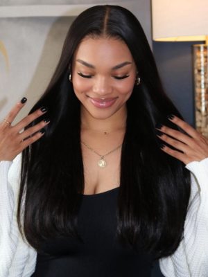 UNice 13×4 Pre Everything Glueless Lace Black Straight Bleached Knots Drawstring Wig No Baby Hair 150% Density