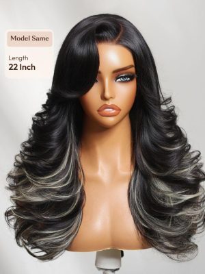 UNice Bye-Bye Slip™ 7×5 Lace Black & Ash Highlights on Black Hair Feathered Hairstyles 200% Density Wig with Side Bangs