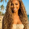 Golden Caramel Base, Honey Blonde Highlights, Water Wave Texture, Glueless Convenience.