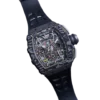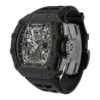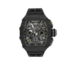 Introduced at the 2018 Geneva International Motor Show, this RM11-03 is the first collaboration between McLaren Automotive and Richard. This Limited Edition timepiece incorporates more Formula 1 technologies than any other Richard Mille. The carbon, tonneau shaped 49.94 x 44.50 mm case is assembled with a fixed, carbon bezel and a water resistance of 164 feet. The RM11-03 is powered by the self-winding RMAC3 calibre with a 55-hour power reserve.