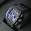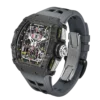 Paired with a performance-style strap designed for comfort and durability, the RM 11-03 offers both striking visual impact and everyday wearability. With its textured finishes, dynamic proportions, and cutting-edge appearance, this model stands as a statement of innovation, speed, and bold horological artistry.
